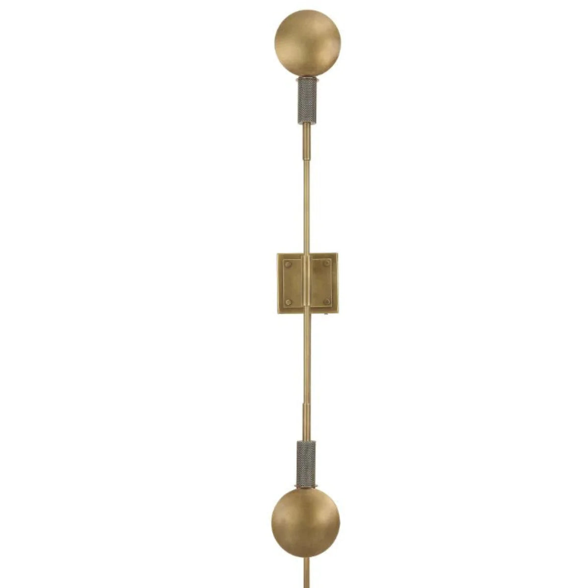 ILAR0047, SANTIN ARBOTANTE 2 LUCES DORADO lámpara de muro de latón antiguo que genera una iluminación brillante y agradable ideal para ambientes que requieren un toque elegante y sofisticado, su diseño versátil permite montaje vertical u horizontal adaptándose fácilmente a diferentes espacios y estilos decorativos, proporcionando confort visual con un acabado cálido que realza cualquier pared, un elemento decorativo funcional y distinguido que combina calidad y estilo, MEDIDAS 12 x 12 x 104 cm, el color puede variar ligeramente de las fotografías