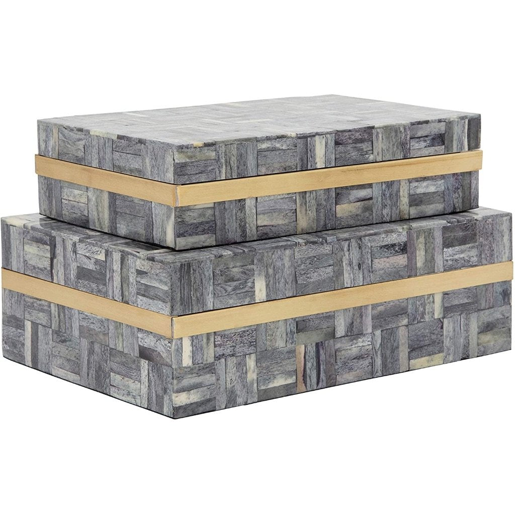 ADCD0015, SET DE 2 CAJAS DECORATIVAS KINA rectangulares en tono gris, ideales para guardar joyas y artículos pequeños, diseño de doble propósito que combina funcionalidad con estética, aportan un toque delicado y natural a escritorios, estanterías o espacios personales, MEDIDAS 22.86 x 15.24 x 7.62 cm, el color puede variar ligeramente de las fotografías