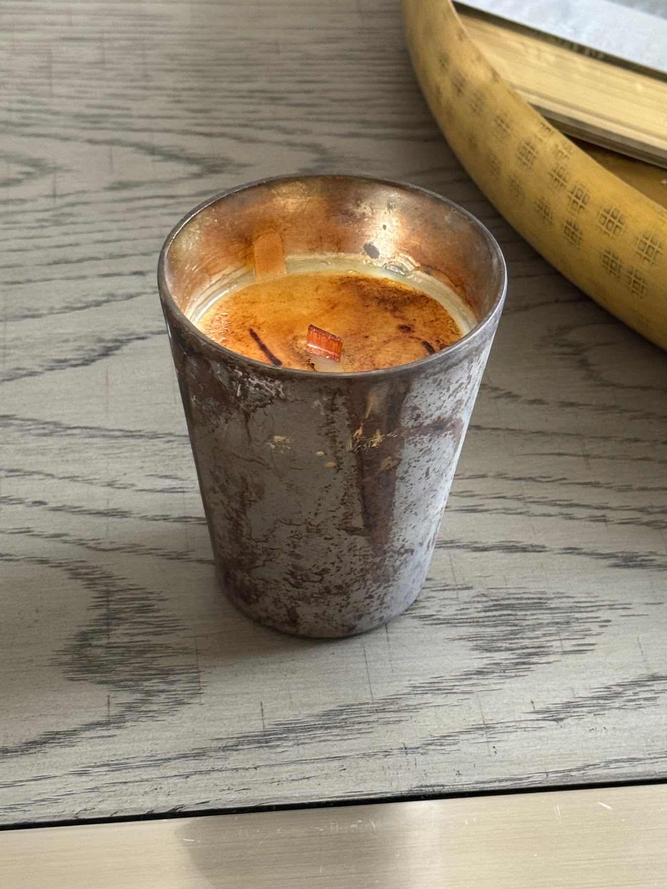 ADVL0014, NAPOLES, VELA es una pieza decorativa que destaca por su estética industrial y sofisticada, presentada en un recipiente con un acabado gris envejecido de textura visual rica y matices metálicos desgastados. Esta edición está impregnada con la fragancia Gatsby, un aroma distintivo y elegante diseñado para ambientar espacios con carácter. Equipada con un pabilo de madera natural, la vela ofrece una experiencia sensorial completa, combinando su luz cálida con un diseño robusto ideal para mesas de centro o estanterías contemporáneas. MEDIDAS 10.80 x 10.80 x 10.10 cm, el color puede variar ligeramente de las fotografías.