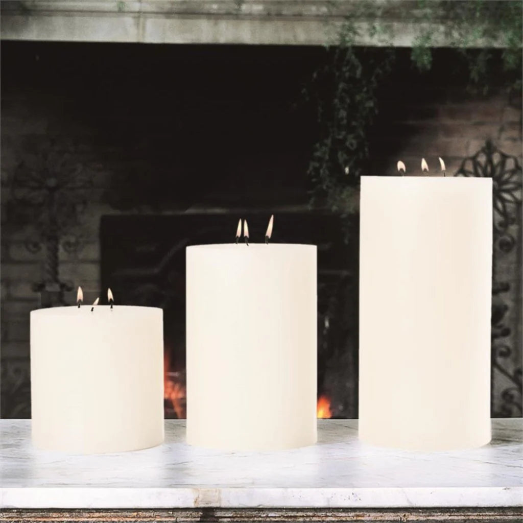 ADVL0007, OLYMPIA 130 OZ, vela de pilar elegante con 3 mechas que ofrece una iluminación cálida y prolongada ideal para crear ambientes acogedores en cualquier espacio del hogar o lugar de trabajo, sin perfume para no interferir con aromas personales, fabricada en 100% parafina que garantiza una combustión lenta y constante durante aproximadamente 120 horas, aportando confort y estilo decorativo, MEDIDAS 15.24 x 15.24 x 22.86 cm, el color puede variar ligeramente de las fotografías