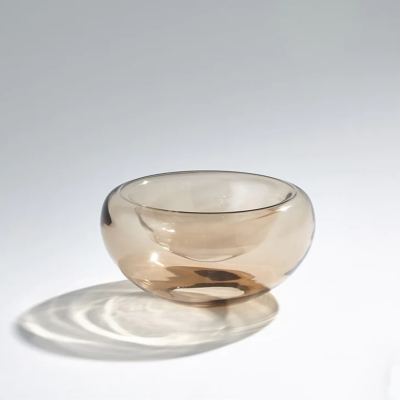 ADCM0209, CENTRO DE MESA MILLIE CHICO en cristal topacio claro con forma redonda de doble pared que refleja la luz con elegancia y sutileza, ideal para complementar arreglos decorativos o como pieza única en mesas auxiliares y repisas, MEDIDAS 25.40 x 25.40 x 12.70 cm, el color puede variar ligeramente de las fotografías, los objetos mostrados son únicamente ilustrativos y no están incluidos