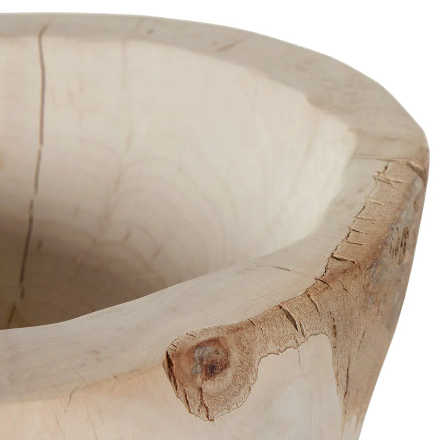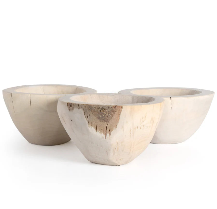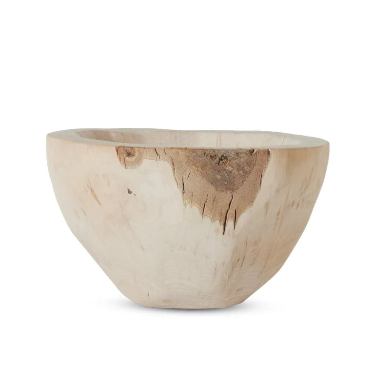 ADCM0217, RECLAIM, CENTRO DE MESA es una pieza de carácter rústico y orgánico, fabricada en madera sólida recuperada. Su peso sustancial (más de 9 kg) denota la densidad y calidad del material. Presenta un acabado "Ivory" (marfil/hueso) que suaviza la apariencia de la madera sin ocultar sus imperfecciones naturales, como nudos, grietas y variaciones de grano, haciendo que cada pieza sea única. Su forma de cuenco profundo y robusto lo convierte en un punto focal ideal para mesas de centro o comedor en ambientes de estilo farmhouse, costero o wabi-sabi. MEDIDAS 36.83 x 36.83 x 17.78 cm, el color y la textura pueden variar ligeramente debido a la naturaleza del material.