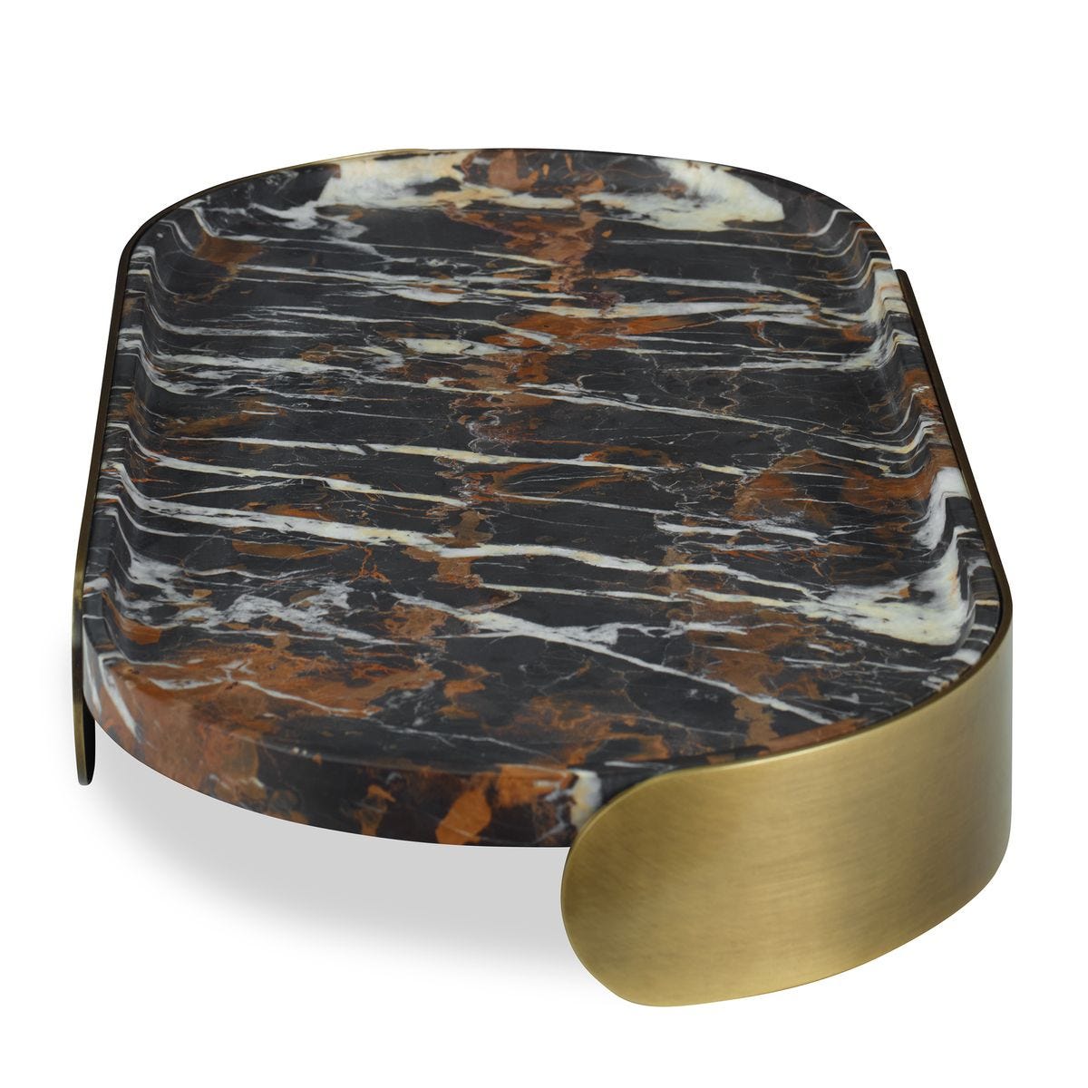 ADCH0110, CHAROLA MÁRMOL NEGRO KENIE elaborada en mármol Michelangelo con acabado pulido, diseño tipo lozenge que aporta sofisticación y funcionalidad, ideal para exhibir perfumes, joyería o elementos decorativos sobre tocadores y mesas auxiliares, MEDIDAS 55.88 x 25.40 x 7.62 cm, el color puede variar ligeramente de las fotografías, los objetos mostrados son ilustrativos y no están incluidos