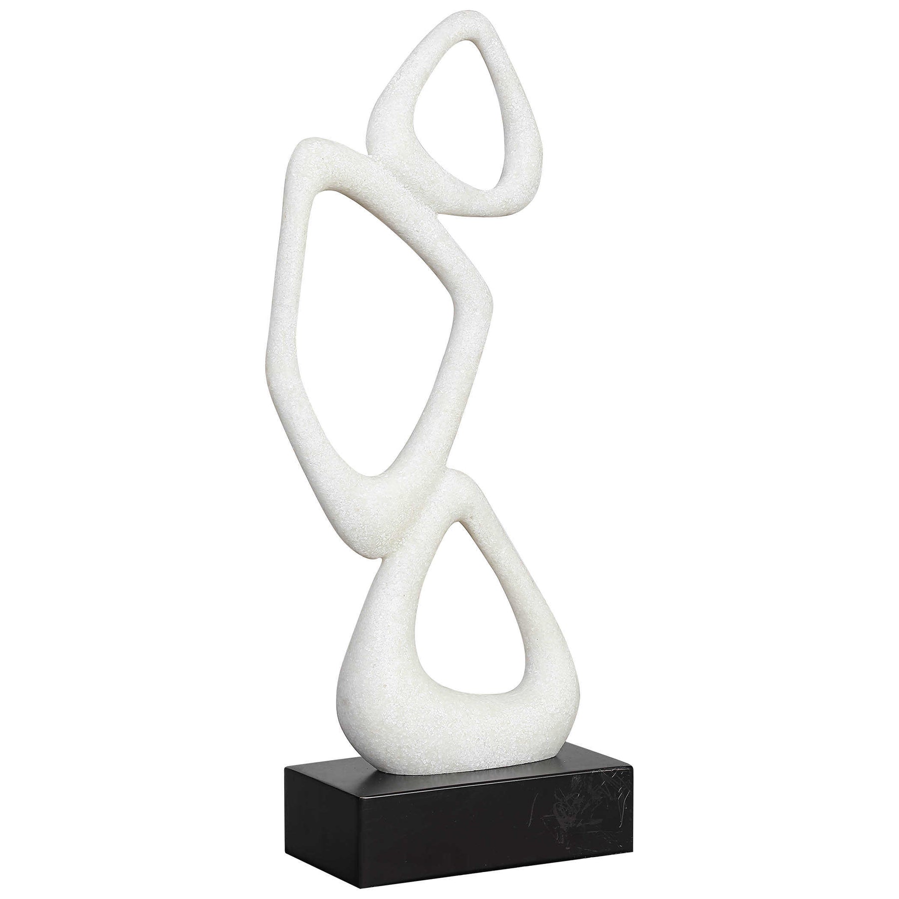 ADES0369, ESCULTURA BLANCA BRYNN, trío de piedras abstractas en piedra artificial de marfil que imita con precisión el mármol, montadas sobre base de metal negro satinado, pieza contemporánea ideal para aportar textura y contraste elegante, MEDIDAS 20.32 x 48.26 x 10.16 cm, el color puede variar ligeramente de las fotografías.