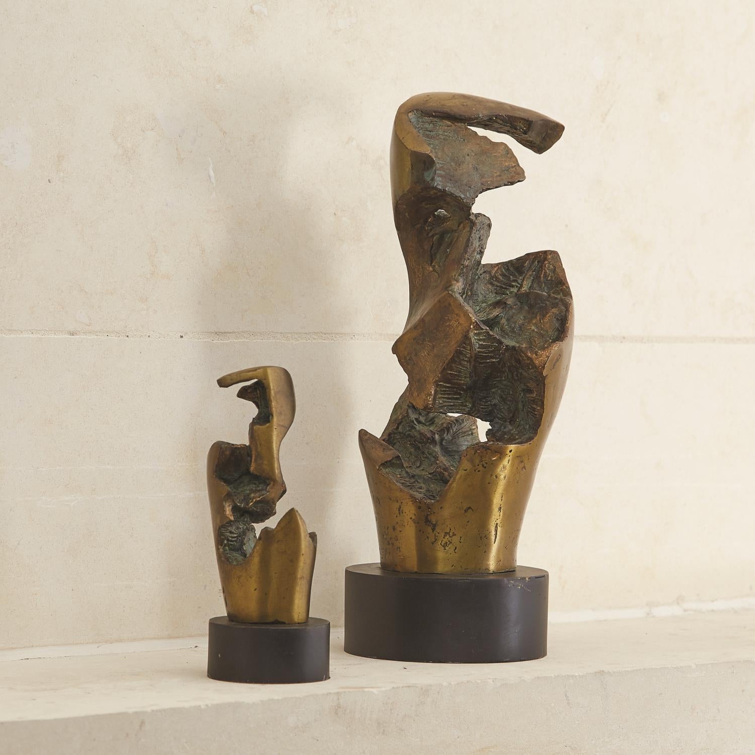 ADES0258, ESCULTURA GRIETA PIEDRA GRANDE hecha a mano en hierro macizo con acabado de bronce envejecido, diseño con curvas y grietas dramáticas que evocan energía y movimiento indomables, pieza escultórica de presencia orgánica y fuerza visual, MEDIDAS 13.97 x 13.97 x 35.56 cm, el color puede variar ligeramente de las fotografías