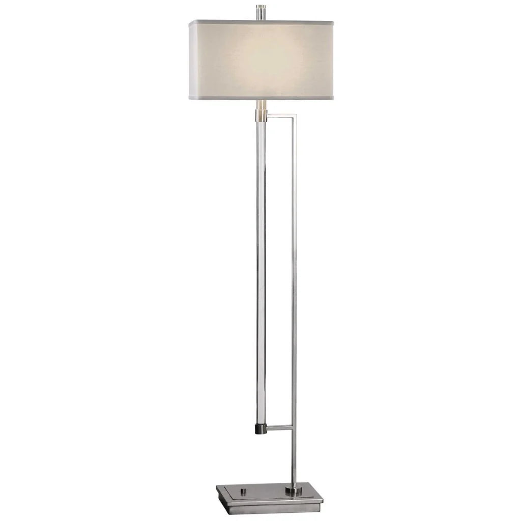 ILLP0019, PERE LÁMPARA lámpara elegante de varilla de acrílico transparente gruesa que aporta un toque moderno y sofisticado, sostenida por una estructura de hierro forjado con acabado en níquel pulido plateado que realza su diseño contemporáneo. La pantalla rectangular de tapa dura está confeccionada en tela de lino blanco con un delicado efecto flameado que añade textura y calidez visual, ideal para iluminar y complementar cualquier espacio con estilo y suavidad. perfecta para ambientes que buscan un equilibrio entre funcionalidad y estética, brindando una luz agradable y decorativa que transforma la atmósfera del lugar. MEDIDAS 43.2 x 25.4 x 163.2 cm el color puede variar ligeramente de las fotografías