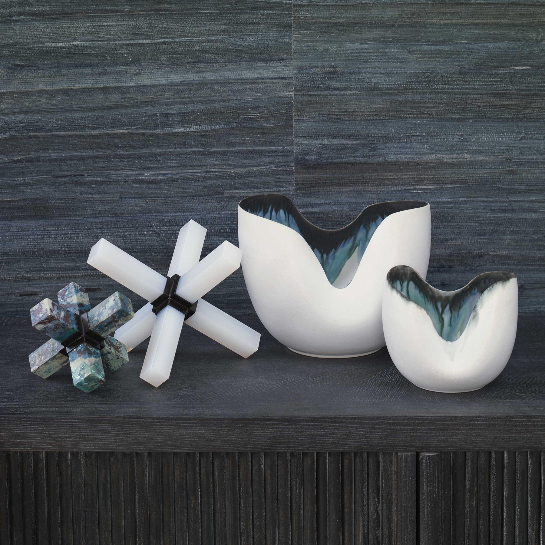 ADJR0321, JARRÓN MEDIANO BONNIE, modelo Indigo Vase, elaborado en cerámica con acabado en tonos índigo que aporta profundidad y carácter, diseño limpio y proporciones equilibradas ideal para interiores contemporáneos que buscan un toque de color sofisticado, MEDIDAS 20.32 X 20.32 X 25.40 CM, el color puede variar ligeramente de las fotografías.
