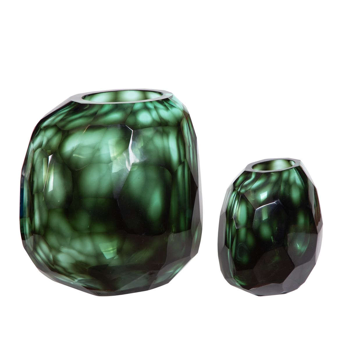ADJR0464, ESMERALD, JARRON GRANDE es una pieza decorativa de presencia sofisticada, definida por su vibrante tonalidad verde profundo que evoca la riqueza de las piedras preciosas. Su diseño de formato bajo y amplio ofrece una silueta sólida y contemporánea, fabricada en vidrio artístico de peso sustancial (más de 3.5 kg). La superficie, trabajada para capturar la luz, resalta la intensidad del color y la pureza del material. Con MEDIDAS 27.94 x 27.94 x 17.78 cm, esta pieza funciona magníficamente como centro de mesa (centerpiece) o acento de lujo en superficies amplias, el color puede variar ligeramente de las fotografías.