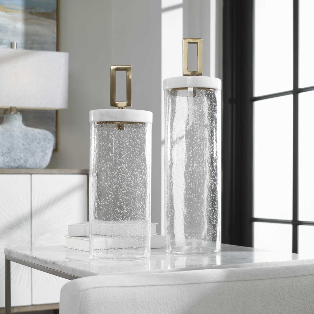 ADJR0349, JARRÓN CHICO HAYWORTH, parte de la serie Hayworth Containers, conserva la estética vertical y el acabado texturizado de su versión grande en una escala más contenida, ideal para complementar arreglos decorativos o como pieza única en espacios estrechos que requieren altura sin exceso de volumen, MEDIDAS 15.24 X 15.24 X 46.72 CM, el color puede variar ligeramente de las fotografías.