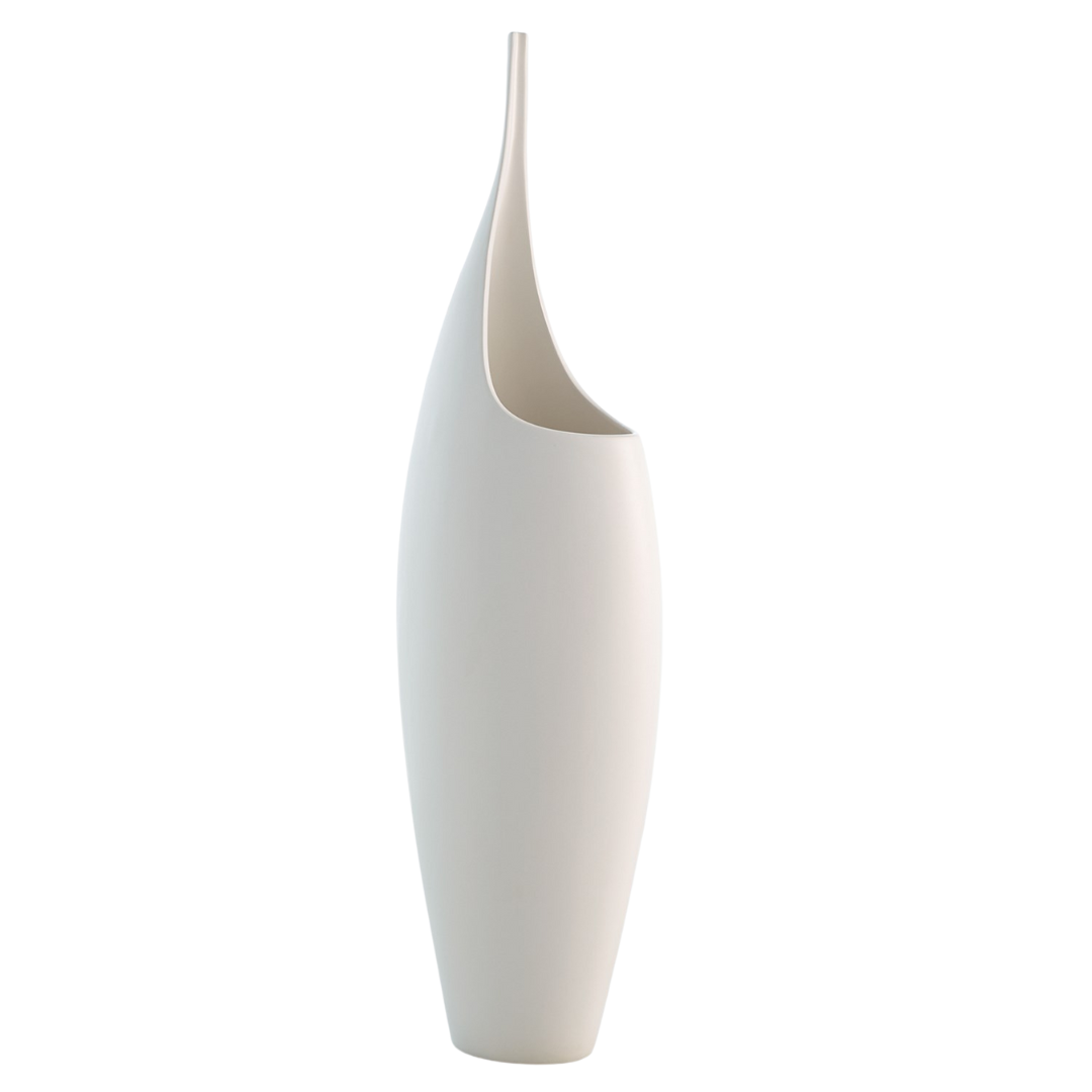 ADJR0407, LAEP JARRÓN BLANCO jarrón de cerámica fundida en barbotina portuguesa con un acabado blanco mate que aporta elegancia y frescura a cualquier espacio, ideal para decorar salones, oficinas o recibidores con un toque sofisticado y moderno, su diseño estilizado y superficie suave realzan la estética del ambiente, combinando funcionalidad y estilo en un producto artesanal de alta calidad, MEDIDAS 24 x 15 x 76.2 cm el color puede variar ligeramente de las fotografías