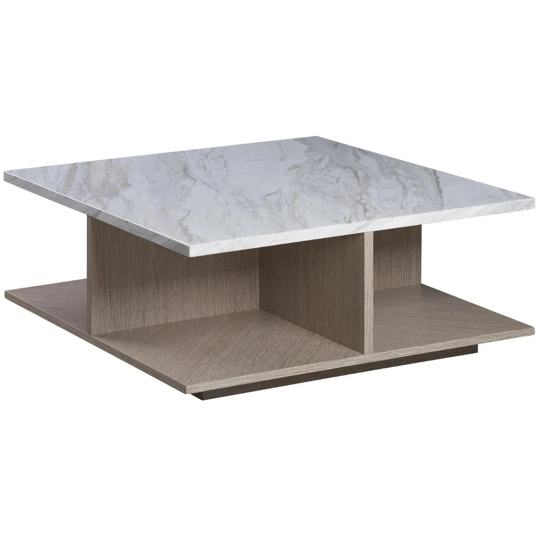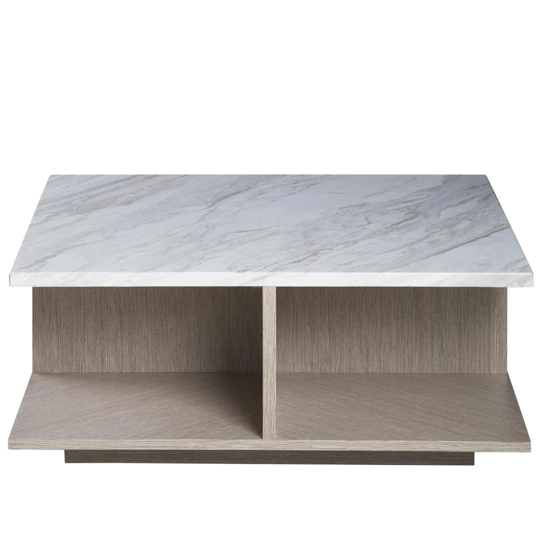 MAMC0187, ESSEN MESA DE CENTRO una hermosa fusión de textura, forma y tono que eleva cualquier sala de estar gracias a sus cubículos inferiores inteligentemente ubicados en un tono cálido y neutro, complementada con una elegante cubierta de piedra y una base flotante que aporta ligereza visual y sofisticación moderna para ambientes contemporáneos y acogedores, MEDIDAS 101.6 x 101.6 x 41 cm, el color puede variar ligeramente de las fotografías