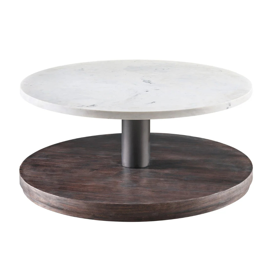 MAMC0186, HEFEI MESA DE CENTRO vigoriza instantáneamente los espacios habitables con su diseño circular elegante y seguro, combinando acabados en blanco y madera que aportan calidez y estilo moderno a cualquier sala, diseñada para ser el punto focal ideal en ambientes contemporáneos o clásicos, ofreciendo funcionalidad y estética en perfecta armonía, MEDIDAS 101.6 x 101.6 x 43.18 cm, el color puede variar ligeramente de las fotografías