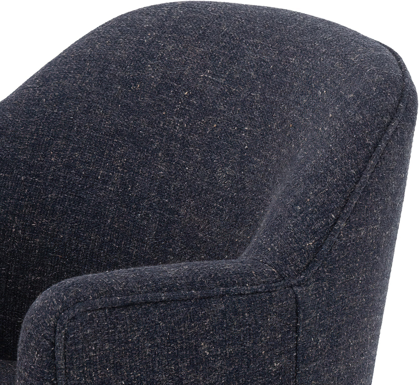 UPSO0266, AMARUS SILLON OCASIONAL asiento estilo tambor tapizado en un gris pizarra suave y texturizado que invita al confort, combinado con una base giratoria de parawood natural cepillado con alambre que aporta un toque fresco y moderno a su elegante forma femenina, ideal para complementar espacios con sofisticación y funcionalidad, MEDIDAS 66 x 80 x 78.8 cm, el color puede variar ligeramente de las fotografías