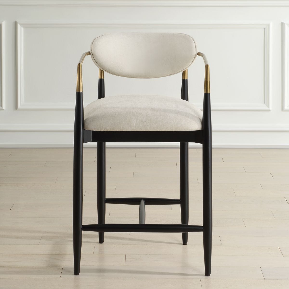 CMBC0029, TRACEY BANCO, elaborado con base metálica en acabado latón envejecido y asiento tapizado en tela neutra, diseño estilizado con respaldo envolvente y proporciones elevadas que aportan sofisticación y confort a barras, islas o espacios de reunión, MEDIDAS 55.88 x 93.98 x 58.42 cm, el color puede variar ligeramente de las fotografías.