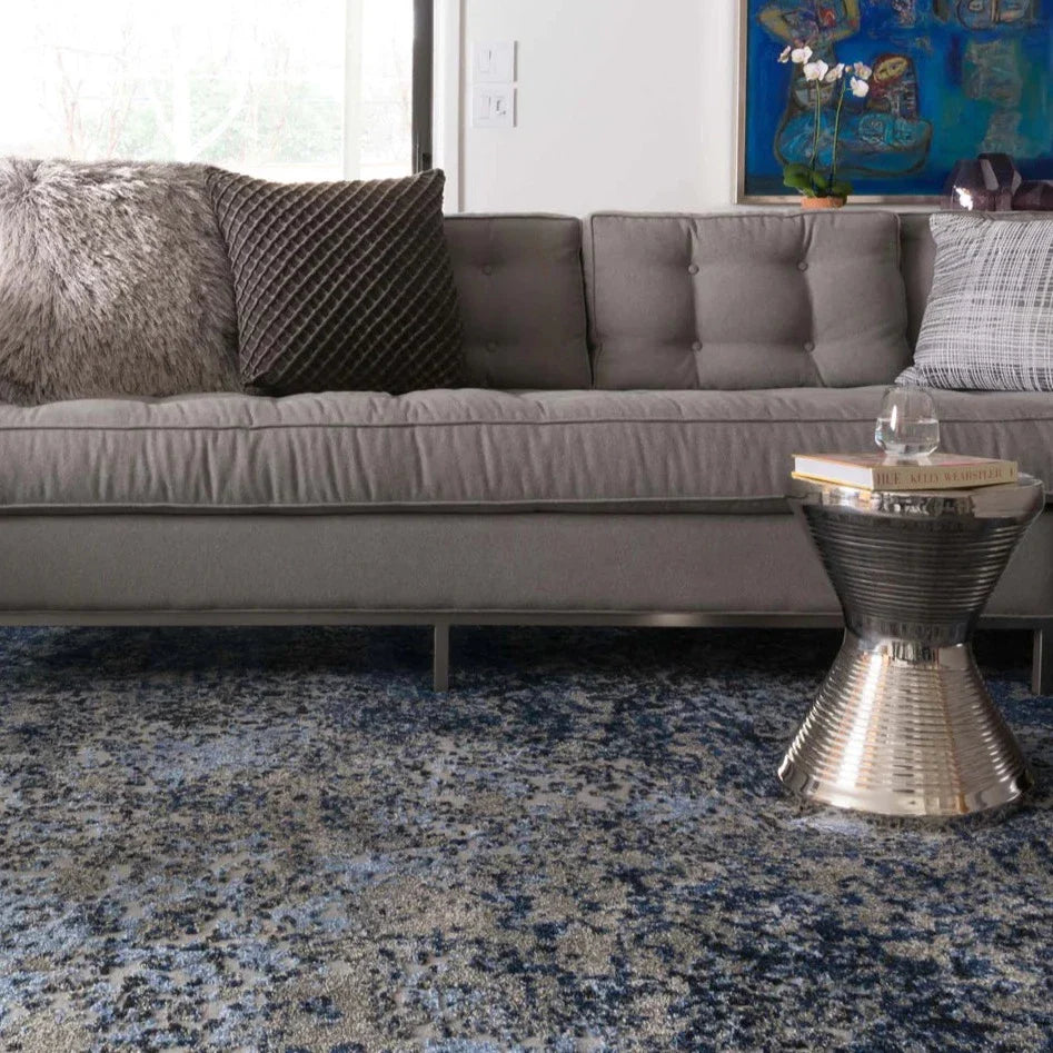 TPTP0242, TYRION TAPETE GREY/NAVY elegante tapete gris y azul marino con diseño clásico y moderno que ofrece una atractiva combinación gráfica y contemporánea, fabricado en polipropileno y poliéster tejidos mecánicamente que aportan una textura de relieve alto y bajo, realzando un acabado vintage desgastado perfecto para ambientes sofisticados y llenos de estilo, MEDIDAS 231.14 x 320.04 cm, el color puede variar ligeramente de las fotografías